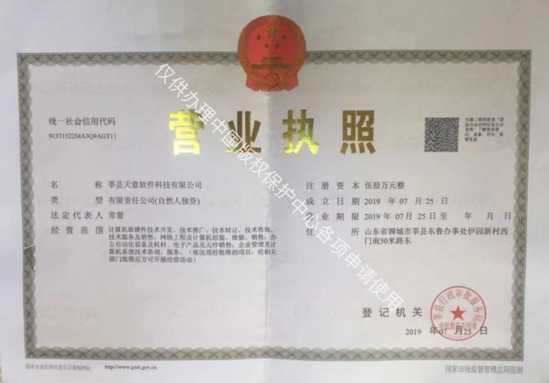 辦公地址: 山東省莘縣伊園新村西門(mén)南50米 天意軟件官方網(wǎng)站版權(quán)所有 魯ICP備19041605號(hào)