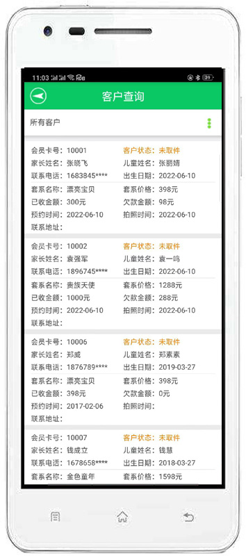 | 4、統(tǒng)計查詢:主要包括財務報表、客戶查詢、客戶狀態(tài)、服務業(yè)績、員工業(yè)績、滿意度統(tǒng)計、成長提醒等內容。 | |||