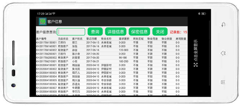 | 主要包括客戶管理、簽約查詢、客戶跟進(jìn)、來電記錄等內(nèi)容。 | |||