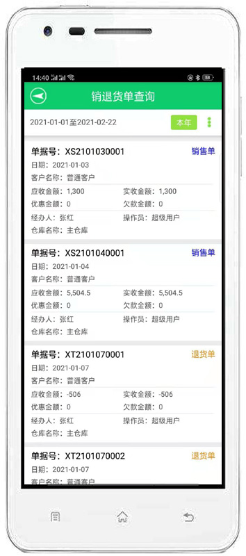 | 銷售管理:進行商品銷售,顧客退貨,銷/退單據(jù)和當前庫存查詢,與客戶的往來帳務。 | |||