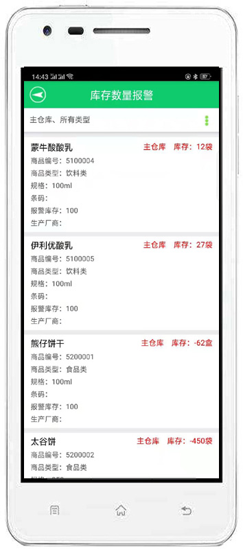 | 庫存管理:包括庫存之間商品調(diào)拔,商品的報損溢,強大的庫存盤點功能,庫存商品報警查詢。 | |||