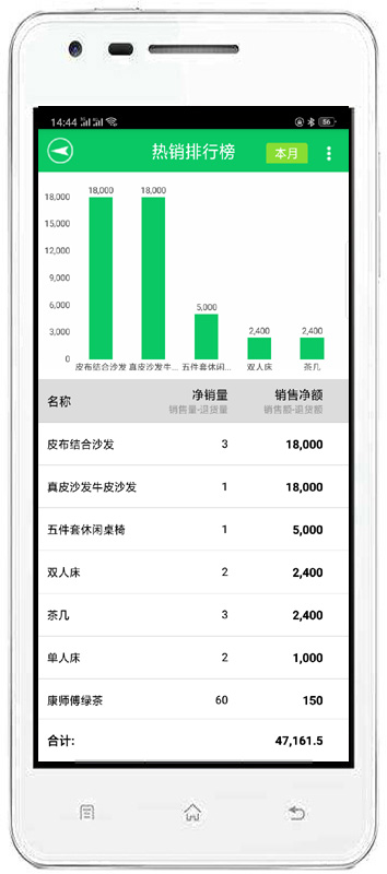 | 統(tǒng)計報表:完整的統(tǒng)計查詢功能,每張單據(jù)每次收款付款都可以清楚的反映。 | |||
