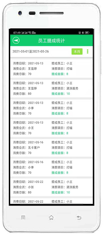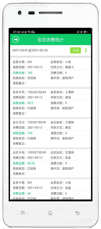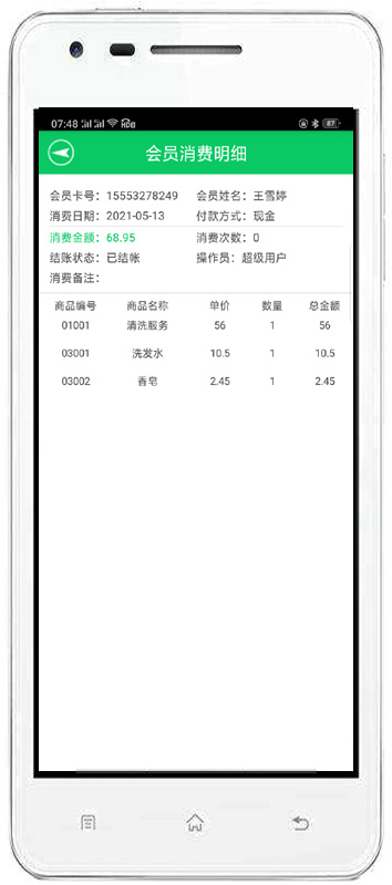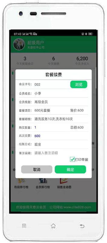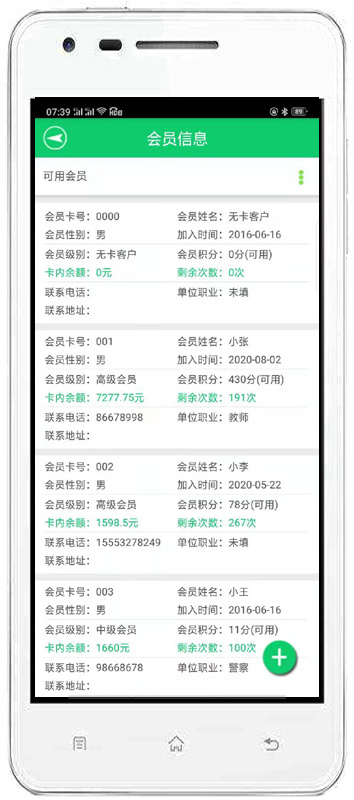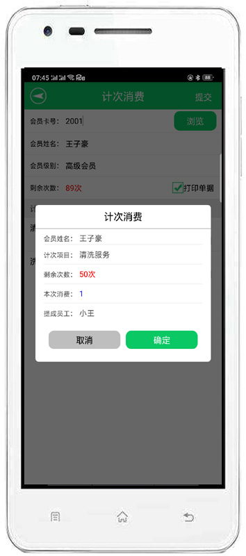 消費(fèi)開(kāi)單:對(duì)會(huì)員消費(fèi)情況進(jìn)行錄入,自動(dòng)完成累計(jì)積分,消費(fèi)打折。也可以增加會(huì)員消費(fèi)商品的詳細(xì)信息。