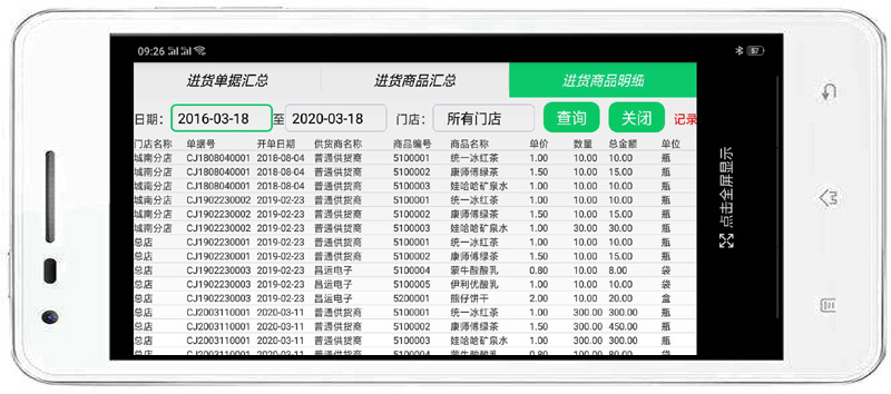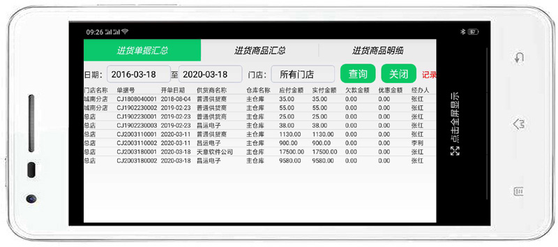 | 進(jìn)貨管理:進(jìn)行商品采購入庫,采購?fù)素?進(jìn)/退單據(jù)和當(dāng)前庫存查詢,與供貨商的往來帳務(wù)。 | |||