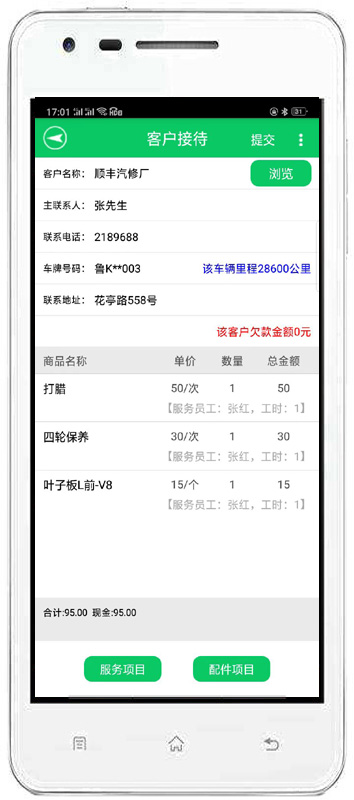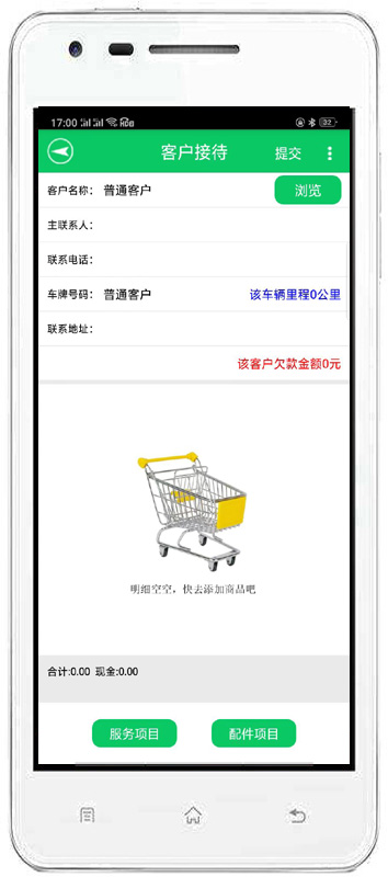 | 客戶接待:包括添加維修、添加客戶。完成客戶下單,調(diào)整維修單據(jù)配件服務(wù)項目。 | |||