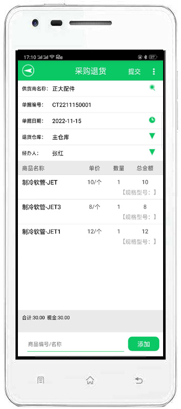 | 進(jìn)銷管理:包括采購進(jìn)貨、采購?fù)素、配件銷售、顧客退貨。 | |||