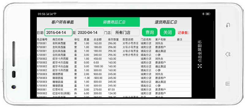 | 銷(xiāo)售管理:進(jìn)行商品銷(xiāo)售,顧客退貨,銷(xiāo)/退單據(jù)和當(dāng)前庫(kù)存查詢(xún),與客戶(hù)的往來(lái)帳務(wù)。 | |||