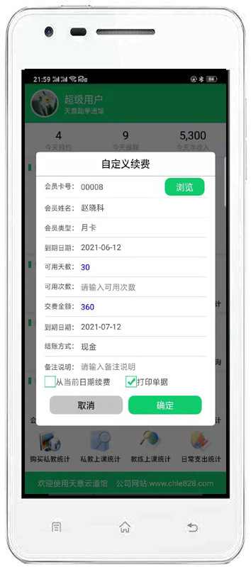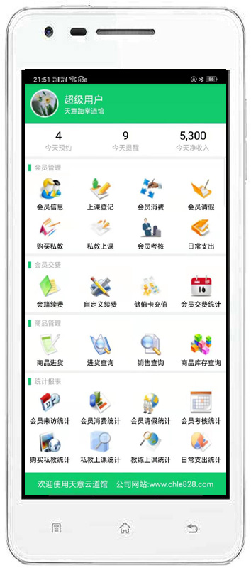 天意跆拳道館管理系統(tǒng)是一款專業(yè)的跆拳道館管理軟件,系統(tǒng)界面簡潔優(yōu)美,操作直觀簡單,無需專門培訓即可上手操作。天意跆拳道學校管理軟件根據(jù)跆拳道館日常工作流程而特別設計,可以滿足跆拳道會所經(jīng)營過程的會員管理、收費管理、教練管理的多種管理要求,是跆拳道館、健身房、健身俱樂部、健身會所進行信息化管理、提高工作效率和顧客滿意度的強大工具。
