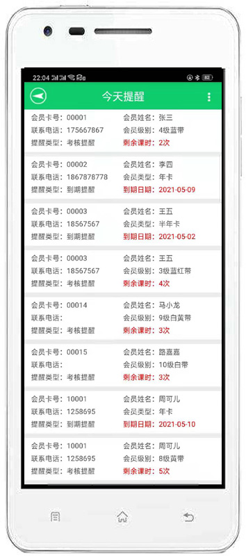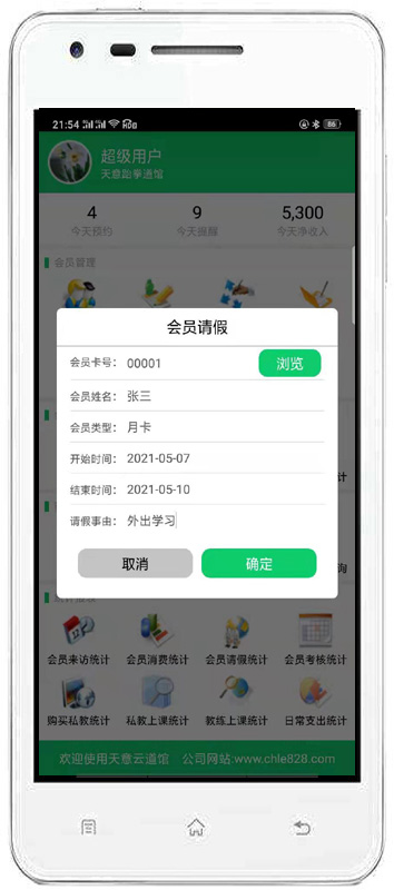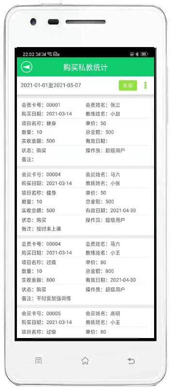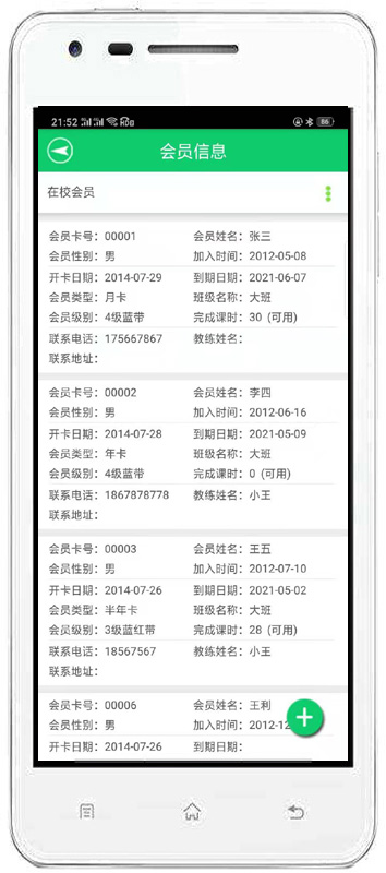 | 主要是對會員的基本信息、充值情況、事件提醒、會員請假、私教管理。 | |||