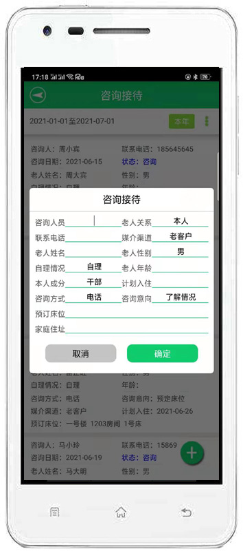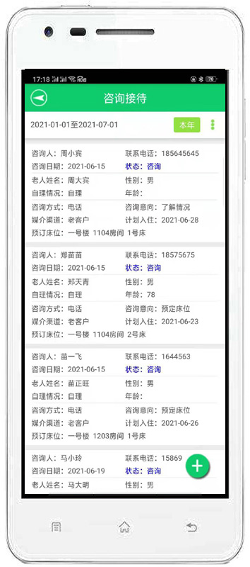 | 2、接待管理:主要包括咨詢接待、來訪登記、床位查詢、老人查詢等內(nèi)容。 | |||