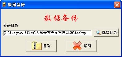 | ·點(diǎn)擊菜單“系統(tǒng)維護(hù)→數(shù)據(jù)備份”進(jìn)入數(shù)據(jù)備份界面。 ·系統(tǒng)默認(rèn)備份路徑是當(dāng)前文件夾下的backup,也可點(diǎn)擊“選擇目錄”按鈕來更改備份路徑,點(diǎn)擊“備份”按鈕進(jìn)行數(shù)據(jù)備份。注意:如果系統(tǒng)需要重新安裝且保留原來數(shù)據(jù),請(qǐng)選擇備份路徑一定在安裝文件夾外的位置,以防止備份數(shù)據(jù)被覆蓋。 |