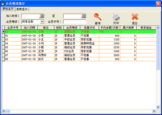 | 2.6.1 會(huì)員情況統(tǒng)計(jì): 功能 用于查詢本店會(huì)員情況。 | |||