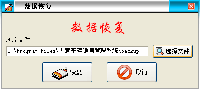 ·系統(tǒng)默認(rèn)備份路徑是當(dāng)前文件夾下的backup,如恢復(fù)其它路徑中的備份文件,可點(diǎn)擊“選擇文件”按鈕來更改恢復(fù)路徑,點(diǎn)擊“恢復(fù)”按鈕進(jìn)行數(shù)據(jù)恢復(fù)。