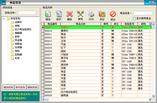 在商品信息窗口中左邊是商品類別,右邊列表中是該類別對應(yīng)的商品?梢孕略鲱悇e,重命名和刪除類別。新增的類別是屬于所選類別的下一級,如果類別下有商品存在則該類別是不能被刪除的。在類別名稱后的文本框中可以輸入類別名稱或類別簡碼來查詢需要的類別。
