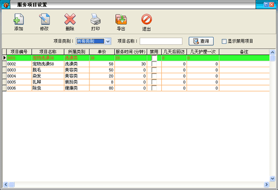 | 服務(wù)項(xiàng)目,也叫護(hù)理項(xiàng)目,可設(shè)置服務(wù)時(shí)間、回訪日期、護(hù)理周期等。