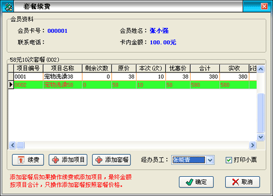 | 包括兩項(xiàng),儲(chǔ)值卡充值和套餐充值。充值可以贈(zèng)送金額,可以選擇員工進(jìn)行提成。