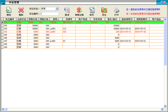 ·此功能是用來(lái)添加、刪除、修改車(chē)位信息?梢詫⒖臻e的車(chē)位進(jìn)行銷(xiāo)售或出租。 |