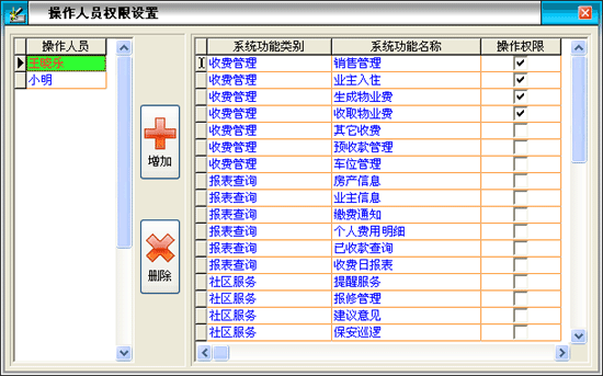 | 在系統(tǒng)維修模塊中點(diǎn)擊“操作權(quán)限”進(jìn)入操作權(quán)限界面如圖: