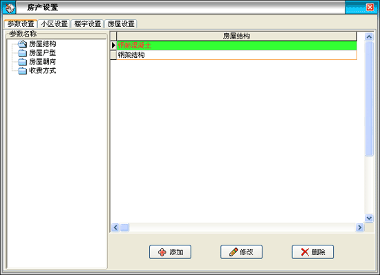 參數(shù)設(shè)置是對(duì)房屋結(jié)構(gòu)、房間戶型 、房屋說(shuō)明、房屋狀態(tài)進(jìn)行設(shè)置的,樓宇設(shè)置對(duì)樓宇可定義樓宇編號(hào)、名稱、房屋結(jié)構(gòu)、層高、房屋數(shù)量等信息,對(duì)房屋設(shè)置可定義門(mén)牌編號(hào)、戶型、單元號(hào)、所屬樓層、面積等信息。 |