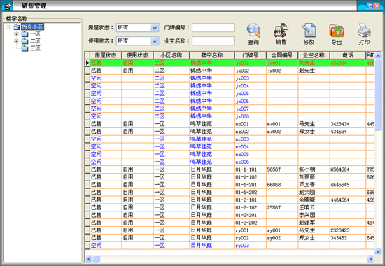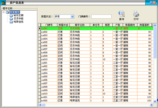 ·用于查詢打印房產(chǎn)的基本信息,可隨時(shí)掌握當(dāng)前所有房產(chǎn)的銷(xiāo)售和出租情況。 |