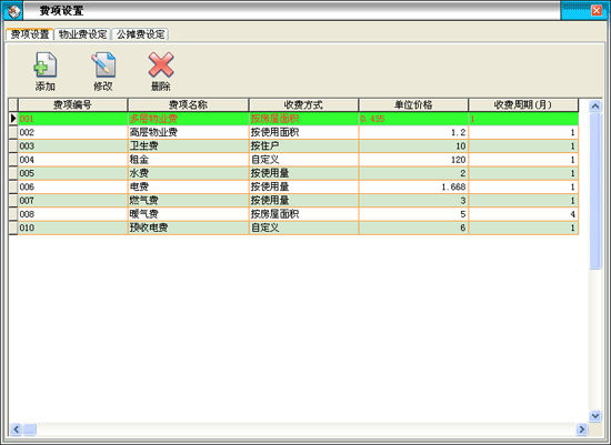 ·1、費(fèi)項(xiàng)設(shè)置分為基本物業(yè)費(fèi)和儀表類物業(yè)費(fèi)兩大類,各自又可定義多種不同的費(fèi)項(xiàng);疚飿I(yè)費(fèi)主要是定義那些按戶或按房屋面積收取的費(fèi)用,如:衛(wèi)生費(fèi)、治安費(fèi)等;儀表類物業(yè)費(fèi)主要是按表的走量需要計(jì)算的那些費(fèi)用,如:水費(fèi)、電費(fèi)等,它可設(shè)置定額價(jià)和超額價(jià)。2、對(duì)于儀表類物業(yè)費(fèi)又可分為自用表和公攤表兩大類,并在此項(xiàng)設(shè)置中為每戶分配儀表編號(hào),并為住戶分配要分?jǐn)偟墓珨偙,以后的抄表就以分配的表?hào)為主進(jìn)行統(tǒng)計(jì)。 |
