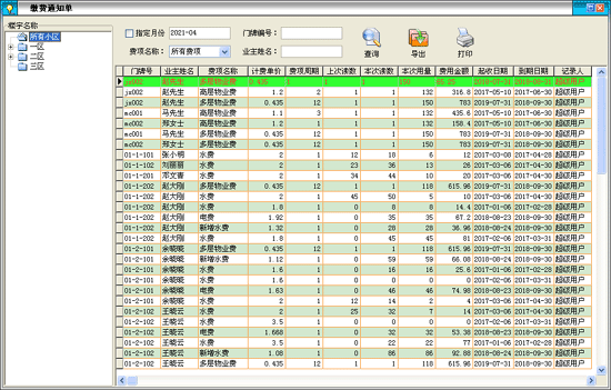 ·繳費(fèi)通知單可分為按費(fèi)項(xiàng)類型查詢打印和按業(yè)主查詢打印,適用于批量打印所有業(yè)主的物業(yè)費(fèi)。 |