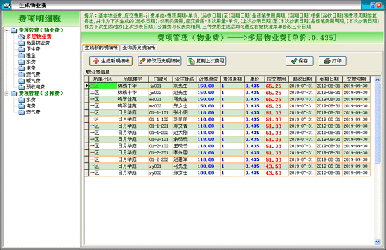 | 第四步:進(jìn)入“收費(fèi)管理-->生成物業(yè)費(fèi)”,定期進(jìn)行物業(yè)費(fèi)的抄表和核算工作。 | |||
