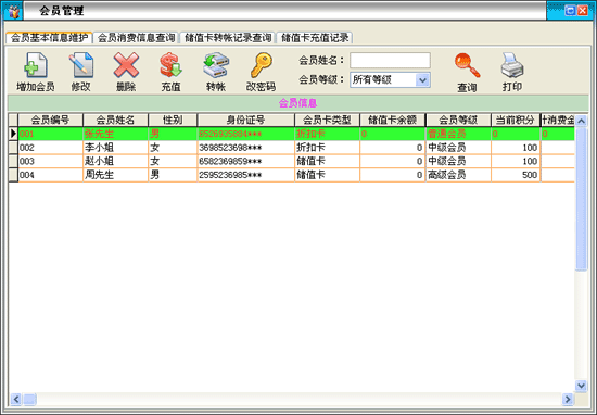 ·點(diǎn)擊主窗口中的快捷按鈕“會員管理”進(jìn)入會員“基本信息管理”界面。 |