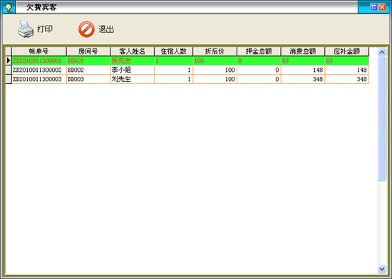 ·點(diǎn)擊菜單“營業(yè)查詢→欠費(fèi)賓客”進(jìn)入欠費(fèi)界面。 |
