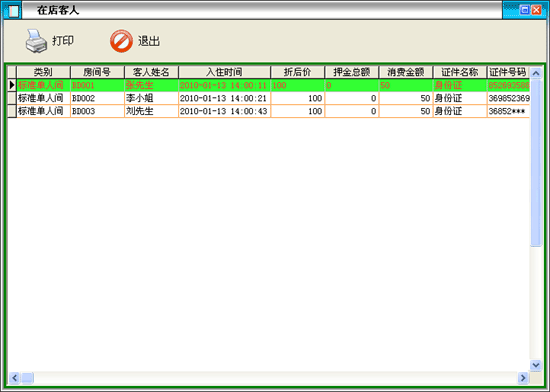 此模塊用來查詢當(dāng)前在店消費(fèi)賓客已記錄在冊的消費(fèi)清單(一般根據(jù)賓客的要求或某種特殊需要會用到此模塊)。