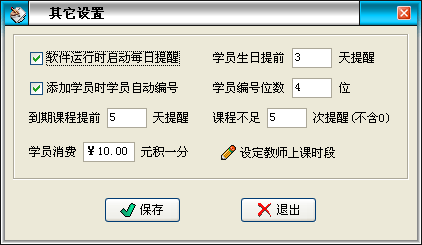 | 進入“系統(tǒng)設(shè)置”,點擊“其它設(shè)置”對軟件的參數(shù)進行設(shè)置。依次進入“課程設(shè)置”、“其它設(shè)置”進行設(shè)置。 | |||