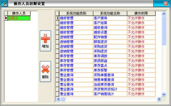 ·點(diǎn)擊菜單“系統(tǒng)維護(hù)→操作權(quán)限”進(jìn)入操作權(quán)限設(shè)置界面。 |