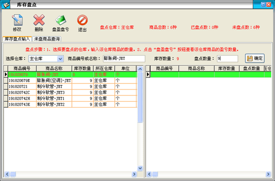 | 在庫存管理中點(diǎn)擊"庫存盤點(diǎn)"按鈕,打開窗口: