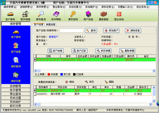| 客戶接待:包括添加維修、添加客戶。完成客戶下單,調(diào)整維修單據(jù)配件服務(wù)項(xiàng)目。 | |||