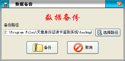 系統(tǒng)默認(rèn)備份路徑是當(dāng)前文件夾下的backup,也可點(diǎn)擊“選擇路徑”按鈕來(lái)更改備份路徑,點(diǎn)擊“備份”按鈕進(jìn)行數(shù)據(jù)備份。注意:如果系統(tǒng)需要重新安裝且保留原來(lái)數(shù)據(jù),請(qǐng)選擇備份路徑一定在安裝文件夾外的位置,以防止備份數(shù)據(jù)被覆蓋。 |