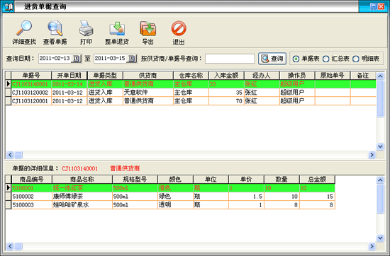 2.3.4 進貨單據(jù)查詢