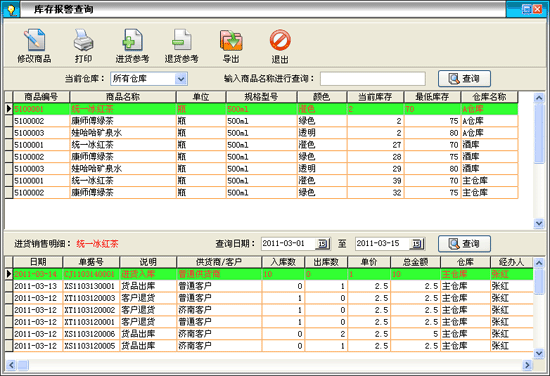 庫存管理:包括庫存之間商品調拔,商品的報損溢,強大的庫存盤點功能,庫存商品報警查詢。