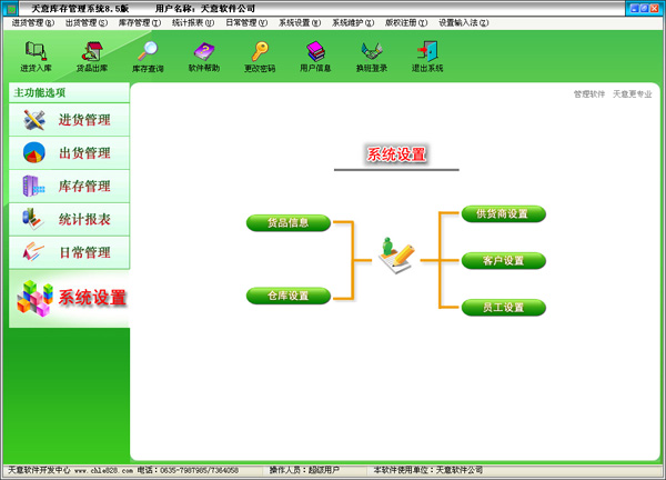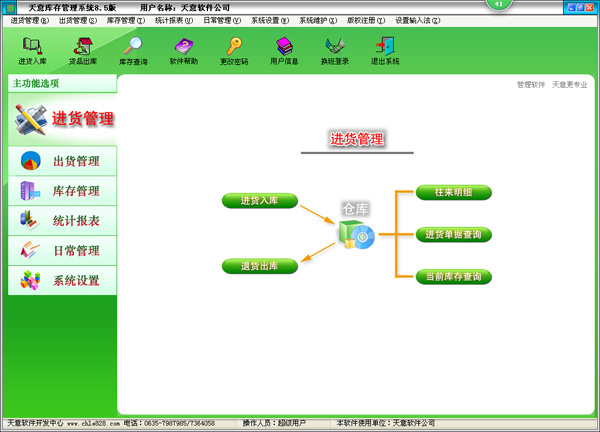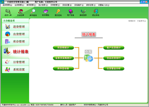 天意庫存管理系統(tǒng)是一款專業(yè)的庫存管理軟件,其中包含貨品進貨、出貨管理系統(tǒng)、倉庫管理系統(tǒng)、報表系統(tǒng)等子模塊。軟件界面設計簡潔美觀,其人性化的軟件流程,使普通用戶不需培訓也能很快掌握軟件操作使用方法,上手極易。強大報表與集成查詢功能是本軟件的特色,所有功能在用戶需要的使用地方自然體現(xiàn),不用打開多個窗口重復查詢。天意庫存軟件廣泛適用于公司企業(yè)、商場、超市、門店等用于企業(yè)庫存管理系統(tǒng)、超市庫存管理系統(tǒng)、倉庫庫存管理系統(tǒng),是您企業(yè)進行信息化管理的強大工具。
