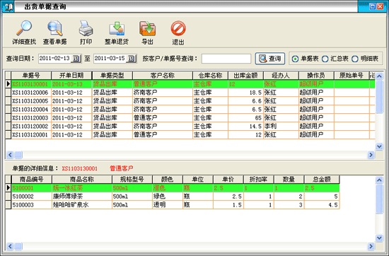 ·客戶出貨情況顯示某個客戶的出貨情況,在列表中可以清楚的看出客戶出貨的數(shù)量,金額和庫存量。