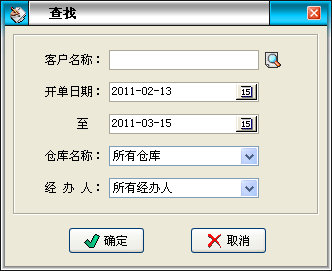 在查詢窗口中選擇相應的條件可以更詳細的查詢單據(jù)。 如果不選擇則默認為所有的單據(jù)。