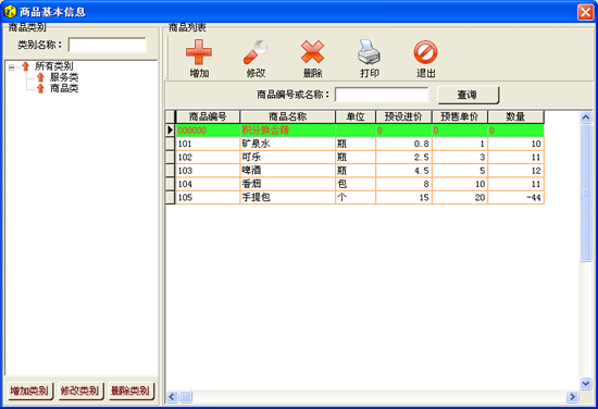 | 該功能主要是對商品類別和商品基本信息的管理,首先在左邊列表中用右擊菜單新建相應(yīng)的商品類別,然后點(diǎn)擊增加按鈕進(jìn)行商品信息的添加,在增加商品信息窗口中如圖: | |||