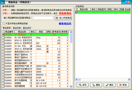 通過'增加商品'按鈕進(jìn)入'增加商品'窗口,進(jìn)行要調(diào)撥商品的選擇;