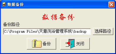 | ·點擊菜單“系統(tǒng)維護(hù)→數(shù)據(jù)備份”進(jìn)入數(shù)據(jù)備份界面。 ·系統(tǒng)默認(rèn)備份路徑是當(dāng)前文件夾下的backup,也可點擊“選擇目錄”按鈕來更改備份路徑,點擊“備份”按鈕進(jìn)行數(shù)據(jù)備份。注意:如果系統(tǒng)需要重新安裝且保留原來數(shù)據(jù),請選擇備份路徑一定在安裝文件夾外的位置,以防止備份數(shù)據(jù)被覆蓋。 |