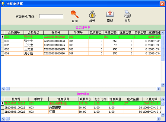 | ·點擊菜單“收銀結(jié)賬→掛賬單結(jié)賬”進(jìn)入掛賬單結(jié)賬界面。 ·操作方法參考“賓客結(jié)賬”。 |