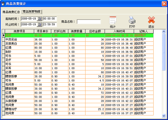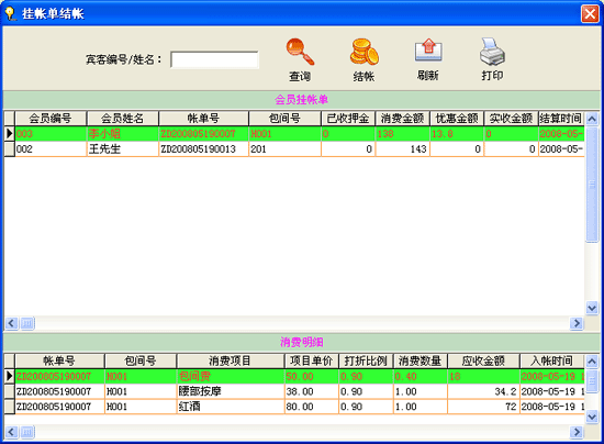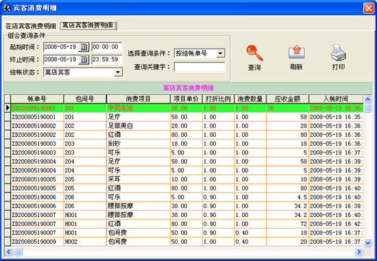 | 2、賓客消費(fèi)明細(xì): 功能