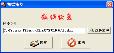 | ·點(diǎn)擊菜單“系統(tǒng)維護(hù)→數(shù)據(jù)恢復(fù)”進(jìn)入數(shù)據(jù)恢復(fù)界面。 ·系統(tǒng)默認(rèn)備份路徑是當(dāng)前文件夾下的backup,如恢復(fù)其它路徑中的備份文件,可點(diǎn)擊“選擇文件”按鈕來更改恢復(fù)路徑,點(diǎn)擊“恢復(fù)”按鈕進(jìn)行數(shù)據(jù)恢復(fù)。 |