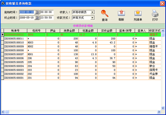 用于按收款人根據(jù)給定的時(shí)間分類查詢其收款明細(xì)。