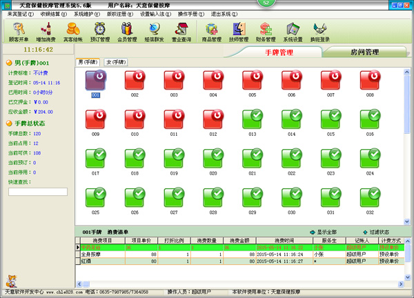 天意保健按摩管理系統(tǒng)是一款專業(yè)的保健按摩管理軟件、休閑SPA管理系統(tǒng),它集前臺(tái)收銀管理系統(tǒng)、員工提成管理系統(tǒng)、營(yíng)業(yè)報(bào)表系統(tǒng)等強(qiáng)大功能為一身,系統(tǒng)界面簡(jiǎn)潔優(yōu)美,操作直觀簡(jiǎn)單,無需專門培訓(xùn)即可正常使用。天意按摩管理軟件是一款充分體現(xiàn)了保健按摩行業(yè)的管理實(shí)情,為他們量身定做的專業(yè)管理軟件。天意休閑保健管理系統(tǒng)是保健按摩、足療企業(yè)、酒店賓館、洗浴桑拿等場(chǎng)所實(shí)現(xiàn)管理信息化理想的保健按摩管理軟件。