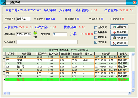 第 二 步、點(diǎn)單模塊:點(diǎn)單消費(fèi)→增加消費(fèi) 第 三 步、收銀模塊:收銀結(jié)帳→賓客結(jié)帳 |