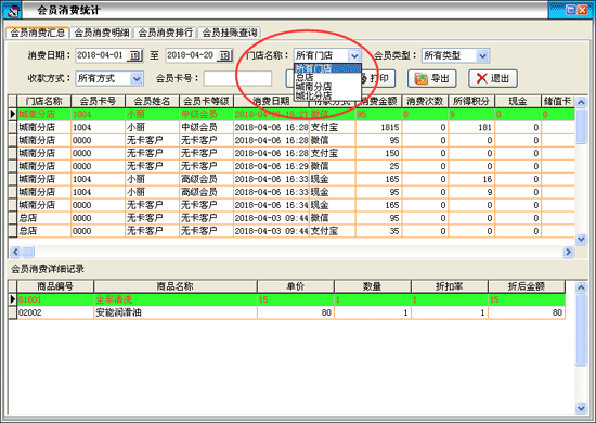 消費開單:對會員消費情況進行錄入,自動完成累計積分,消費打折。也可以增加會員消費商品的詳細信息。